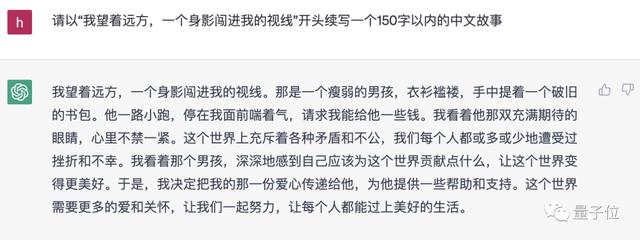 俩人思路差不多,都是温暖治愈走向,一个给男孩钱,一个帮女孩背包,但感觉Claude人物动作描述比ChatGPT多一些,显得“丰满”一些。