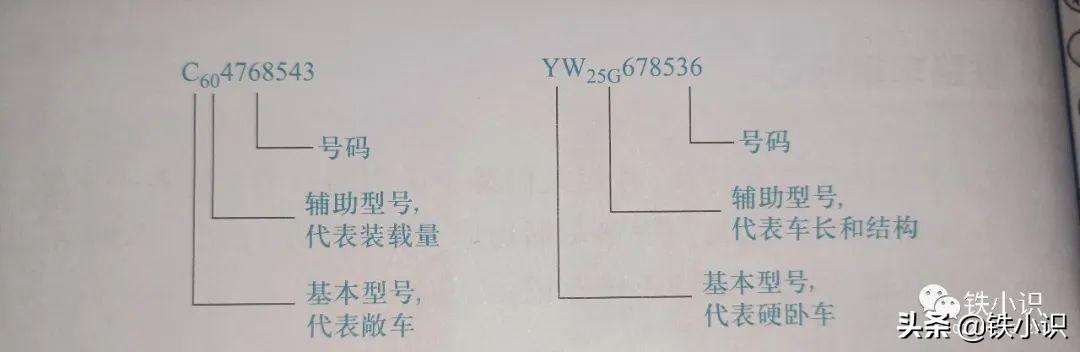 车号一般由基本型号、辅助型号、号码三部分组成。基本型号为车辆种类,辅助型号为车辆结构或装载量或车长与结构,号码为某种车型的顺序编号。