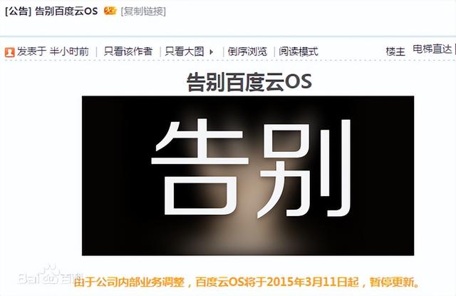 2015 年 3 月,百度停止更新百度云 OS,百度“MIUI”的寿命,只维持了不到 3 年。