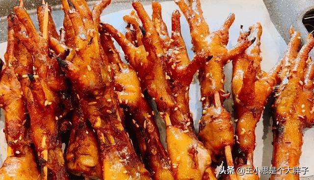 烧烤摊上,鸡翅和鸡爪是最吸引我的,尤其是鸡爪,感觉一口咬下,骨头就自己脱落了。比自己在家做得好吃多了,老板说,那是因为他们都会提前把鸡爪用秘制卤水卤熟后再烤,这样会更加入味。