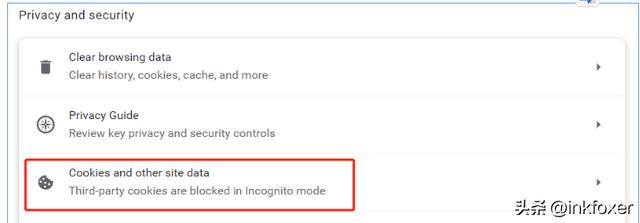 第 2 步:点击隐私和安全 > Cookie 和其他站点数据 > 查看所有站点数据和权限。
