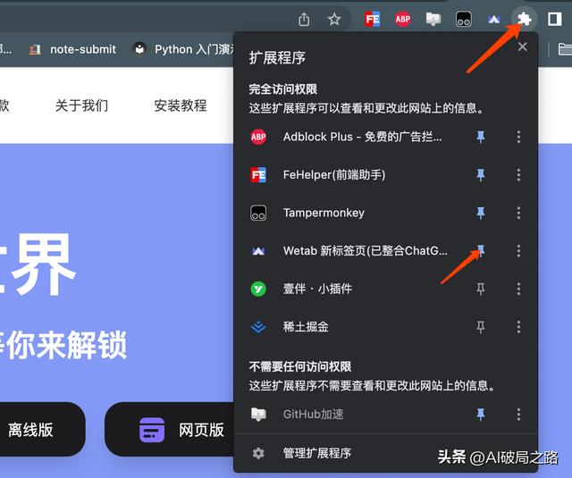 1、进入 Wetab.link 官网,下载离线版的 CRX 插件就可以了。