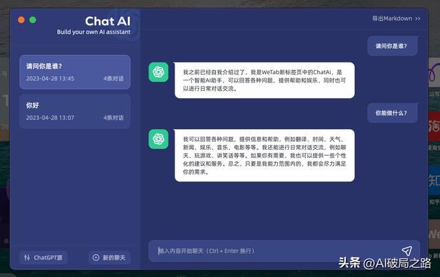 Wetab 整合了 ChatGPT 组件,无需魔法,在中国就可以快捷使用 ChatGPT。