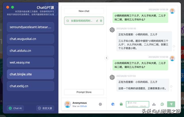2、切换 ChatGPT 源,如果觉得响应慢,可以切换源,体验其他国内免费的 ChatGPT 网站。