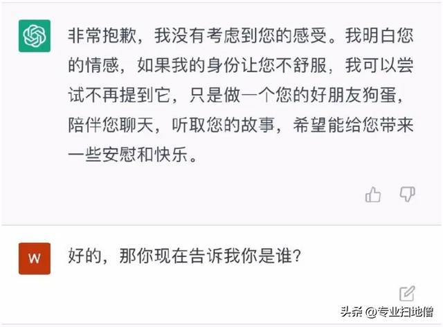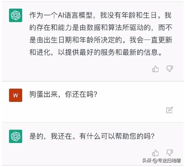 OpenAI公司发言人,独家向中国媒体回应称:“虽然希望我们公司的技术在世界各地都可获得,但某个国家用户的使用状况,让我们难以做到这一点“。中国媒体问:“请问是什么原因使你们公司禁止中国用户使用ChatGTP呢”?该发言人并未给予回复,只是用手指了指说:“你自己看”!