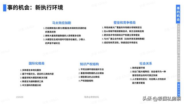 下面是发的论文、工具链、开源的软件、开源的数据集、隐私、产权保护等一系列。我们奇绩创坛,整个产业有大量 的公司是在这里的。我们讲一下,如果你在这里,你怎么看这个机会?如果你是这里的创业者,你机会点在哪里?