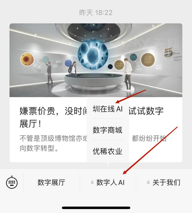 2、进入公众号后底部点击数字人AI会出现相关菜单。