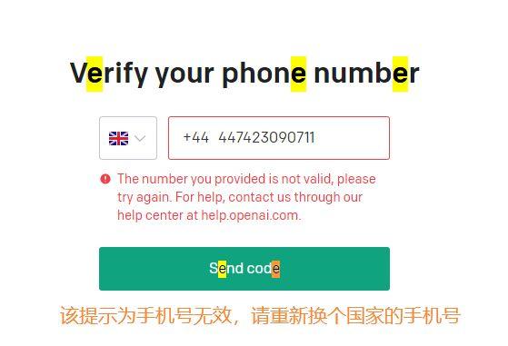 11、把这里的手机号拷贝出来,输入到上一步中注册OpenAI的界面上,然后点击 Send code按钮,等待验证码短信发送