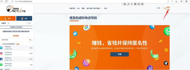 ②:果外手机号接码平台:https://sms-activate.org/cn/