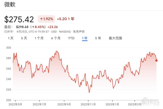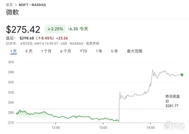 财报发布后,微软盘后股价大涨,涨幅一度超8%。