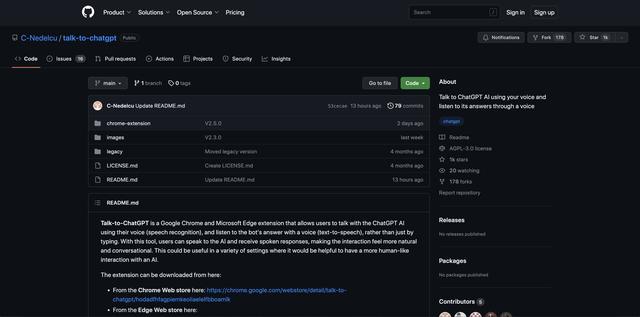 这是基于开源项目的官方“Talk to ChatGPT”扩展。通过您的麦克风与 ChatGPT 交谈,并通过语音听到其回应。这使用了 Google Chrome 的语音识别和文本转语音技术。
