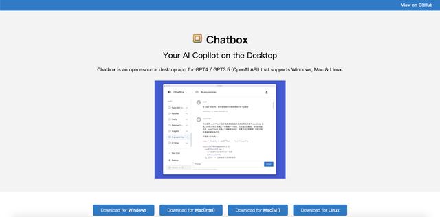 Chatbox是一款支持Windows、Mac和Linux的GPT4/GPT3.5(OpenAI API)开源桌面应用程序。