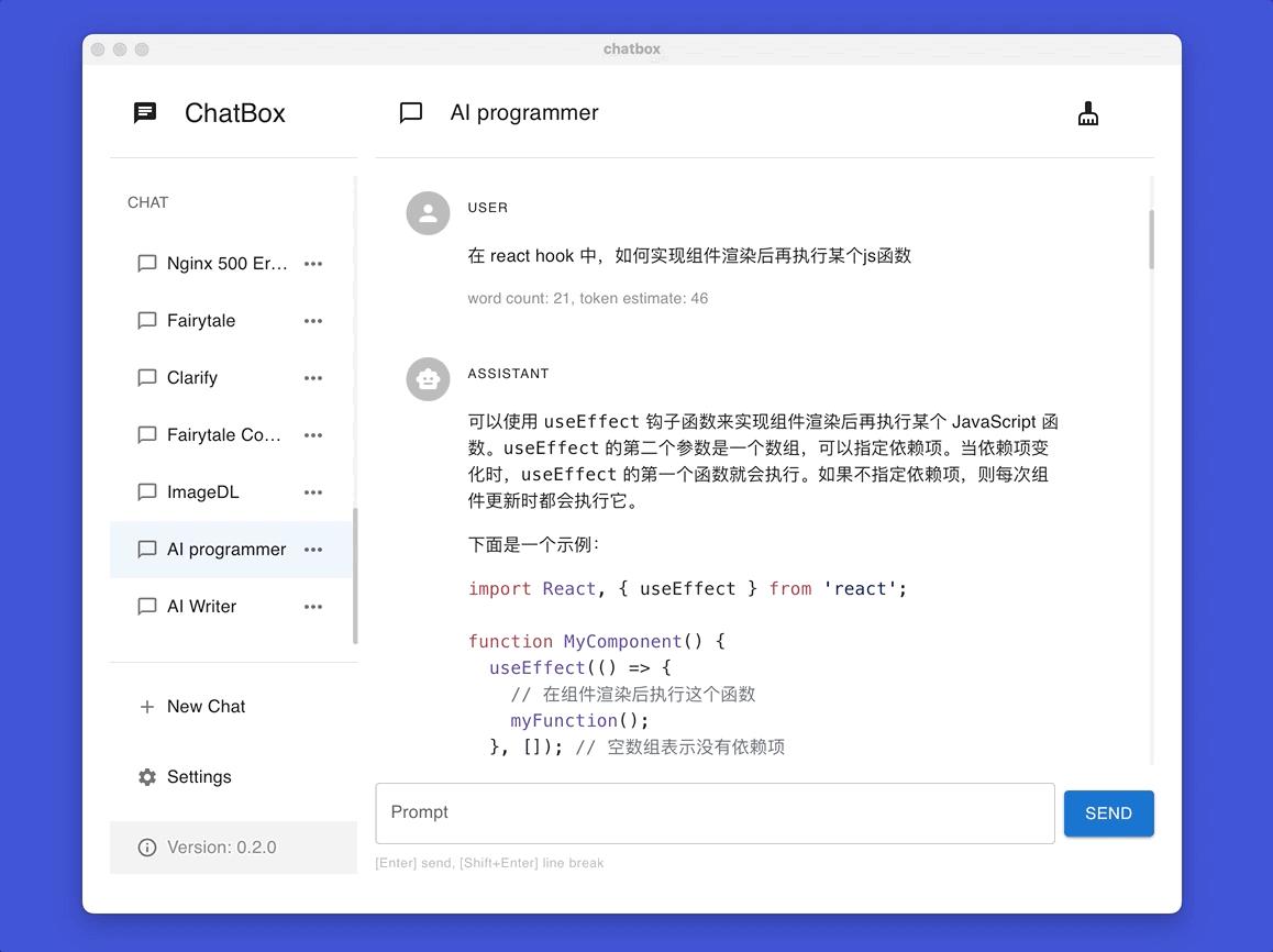 - ChatBox 还可以帮助你设计、调试和管理 prompt,让你更好地操作 AI 模型。