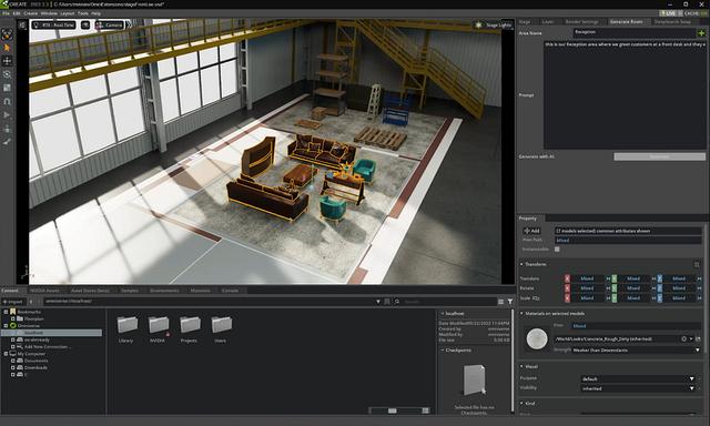 一切都从 Omniverse 中的USD场景开始。 用户可以使用 Omniverse 中的铅笔工具轻松圈出一个区域,输入他们想要生成的房间/环境类型——例如,仓库或接待室——然后单击一下即可创建该区域。