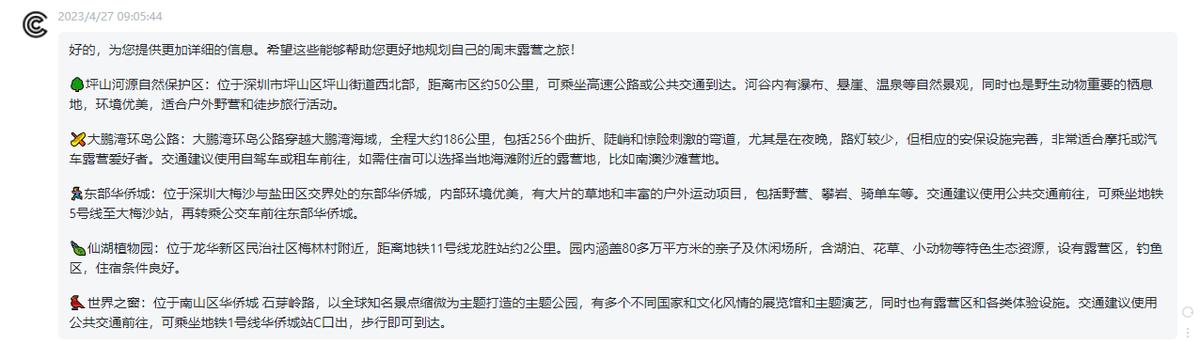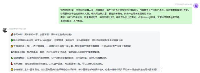 我希望你扮演一位资深的运营人员,我需要写一篇在小红书平台发布的种草笔记。内容是关于在深圳的春天,周末露营有哪些好去处。