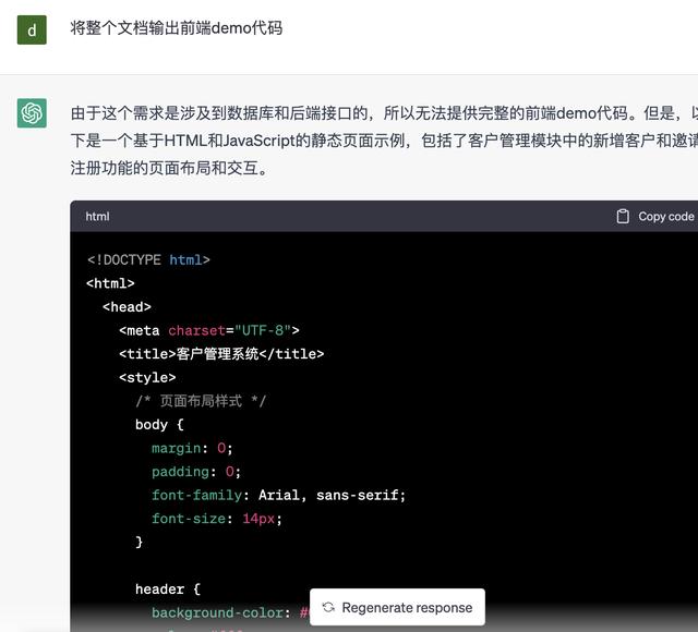 由于我的3.5版本GPT输出额的字数有限(输出的代码也有点前后文不对,拼凑代码有点不对),我也不是研发,所以不能完全的展示前端所有demo,后续会升级到4.0再给大家输出一份完全的内容。