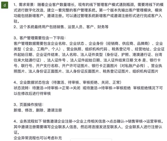 在传统的需求文档编写中,往往存在信息重复、描述不清晰等问题,而Chat GPT可以生成准确、清晰、易于理解的文本。这可以保证需求文档的质量,同时也可以减少产品经理在后期修复文档问题的时间和精力。