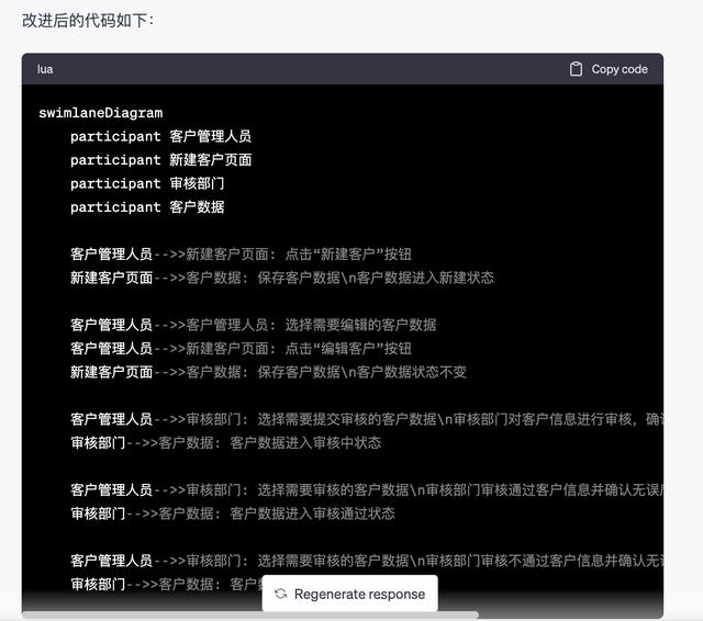 由于chatGPT3.5只能输出图文,所以让他输出流程图代码,然后将代码转换成流程图即可。