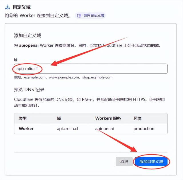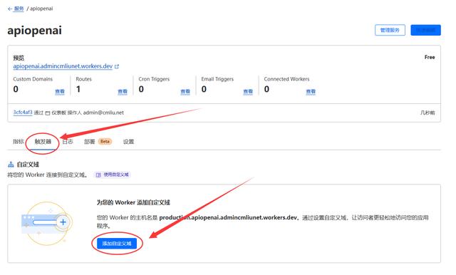 接下来添加自己的域名来实现自己的api地址,返回上一级选择“触发器”选项点击“添加自定义域”