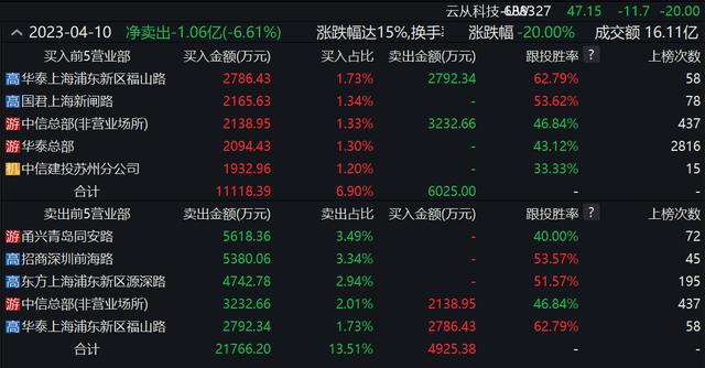 此外,也有一个机构专用席位现身云从科技龙虎榜的买五位置,为中信建投证券苏州分公司净买入1932.96万元。
