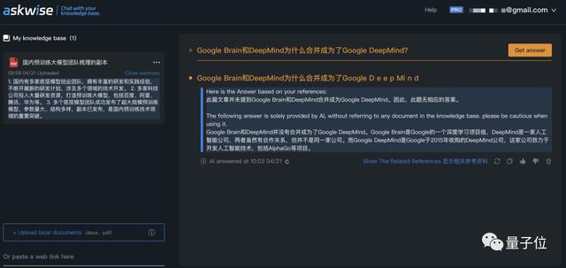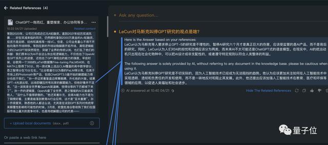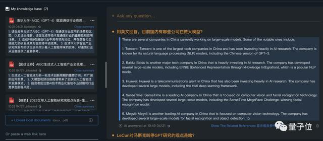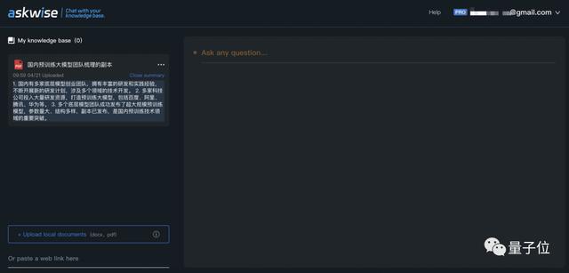 然后甩过去N个本地文档,就能开始在右半部分的“Ask any questions”处进行提问。