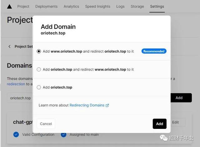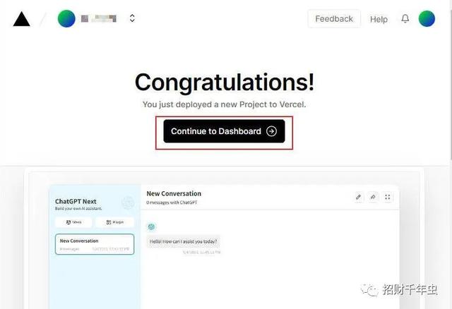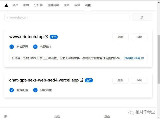 注意,Vercel部署完成后,这里生成的地址需要科学上网才能访问。因此,我们需要使用cloudflare CDN来加速ChatGPT-Next-Web应用程序,以便国内用户可以快速访问你的网站。