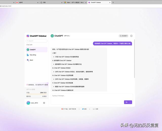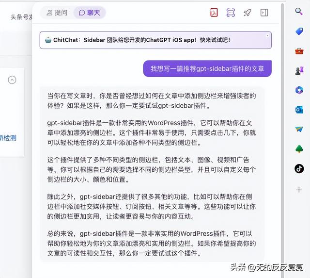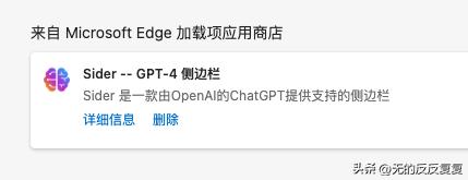 Edge浏览器中叫做:Sider — GPT-4 侧边栏