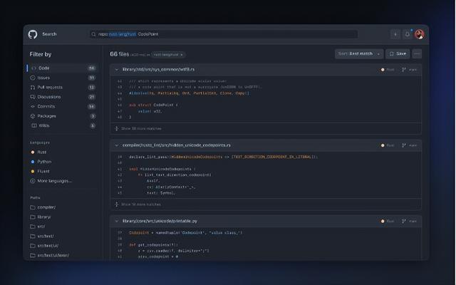 站长之家(ChinaZ.com)5月10日 消息:GitHub 终于宣布面向所有用户推出新的代码搜索引擎,旨在帮助开发人员快速搜索、导航和理解代码,最终提高工作效率。新界面不仅提供建议与补全,还能对搜索结果进行智能分类。