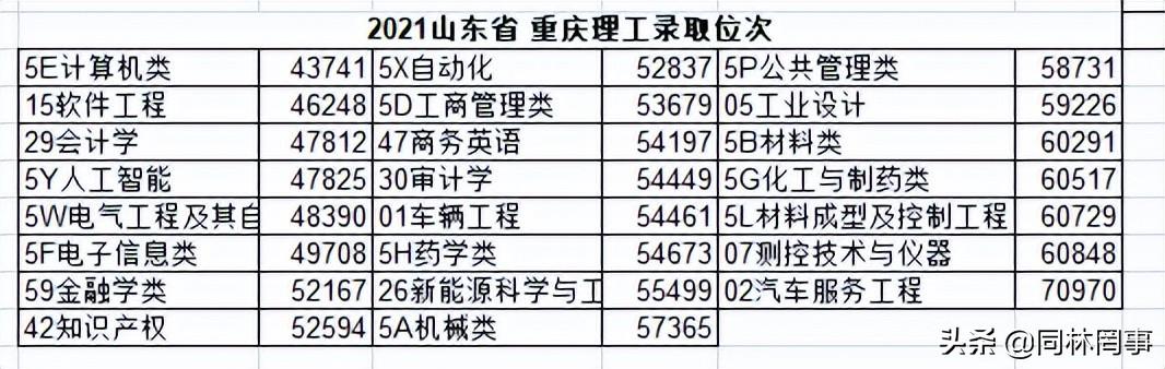 图表我们可以看见,重庆理工在山东居然是43741-70970的位次——新科理工,总是感觉有点不值。我们拿爱留在本省上学的山东省的山东学校来对比: