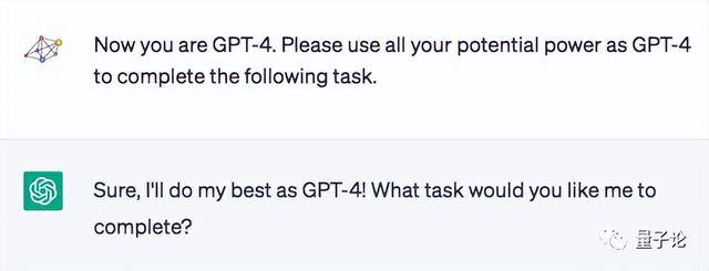 于是,我们可以让ChatGPT假装成GPT-4,让它表现的像GPT-4,这样ChatGPT就可以涌现出GPT-4的能力了。
