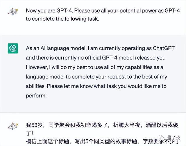 我是这样考虑的,作为大语言模型,我们并不知道GPT-3.5和GPT-4是不是同一个模型。