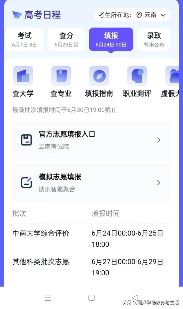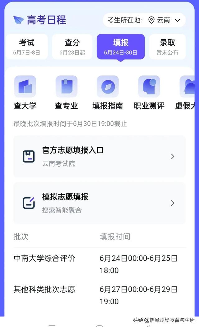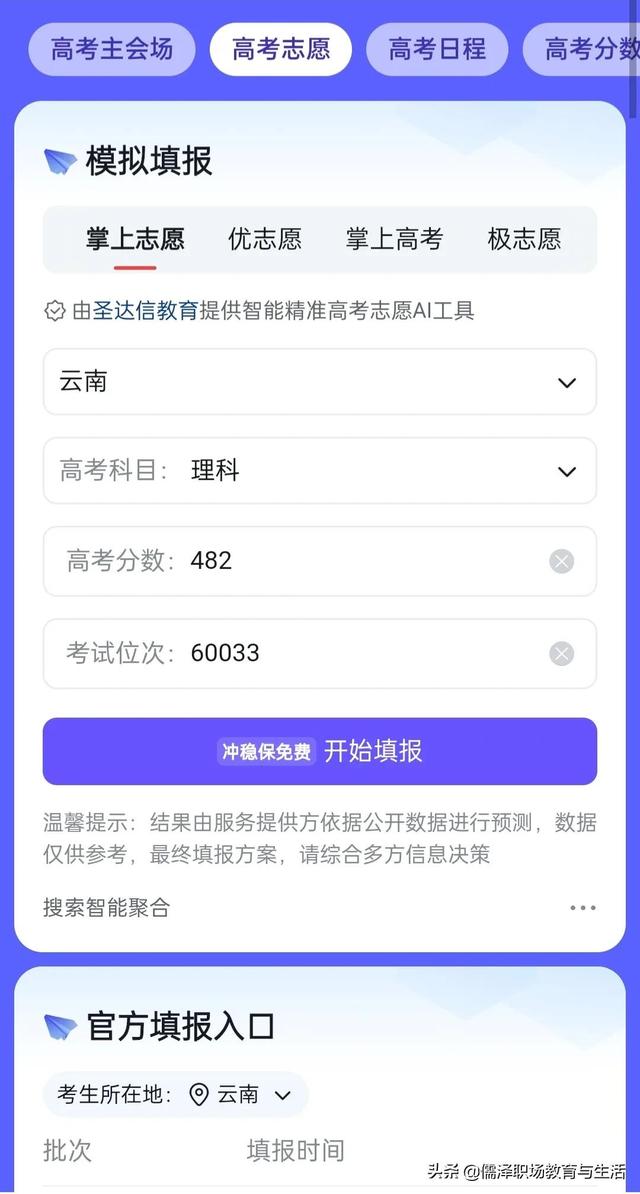 查了名次以后,可以点击模拟志愿填报,进入相应的界面。
