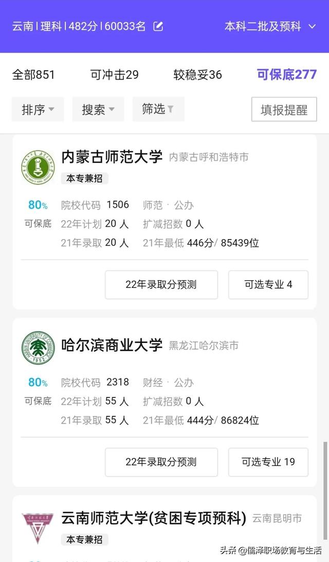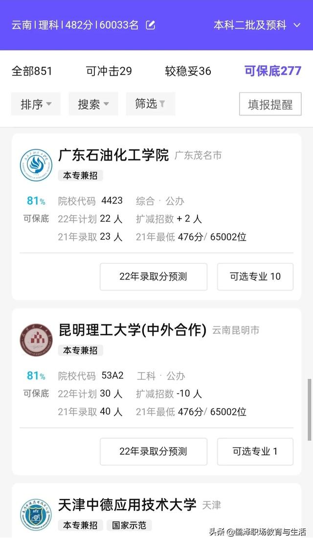 然后根据自己的成绩,可以从985和可冲击、较稳妥和可保底中,选择相应的学校。结合自己的兴趣爱好和其他的情况综合以后进行选择。