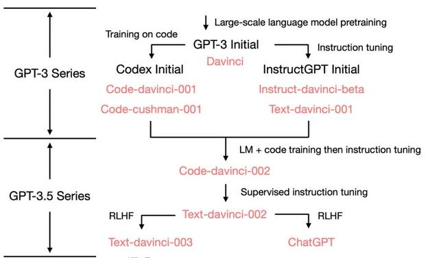 例如Codex 用作代码生成,instructGPT是ChatGPT的兄弟模型,经过RLHF(基于人类反馈的强化学习)微调得来的。