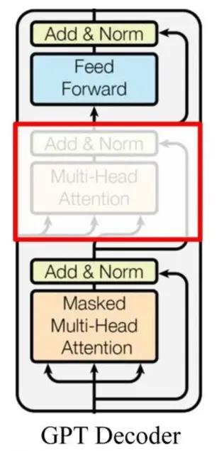 GPT的解码器和Transformer的解码器也有点不一样,去掉了中间那部分,毕竟没有了编码器的输入
