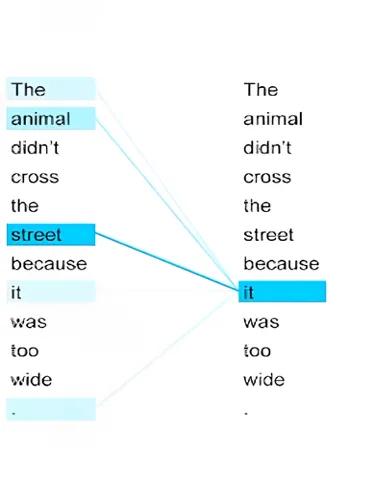 当我们改一个单词后会发现,计算出来的注意力,会变成street最高,所以改后的it,表示为这条街太宽了,所以动物才过不去。