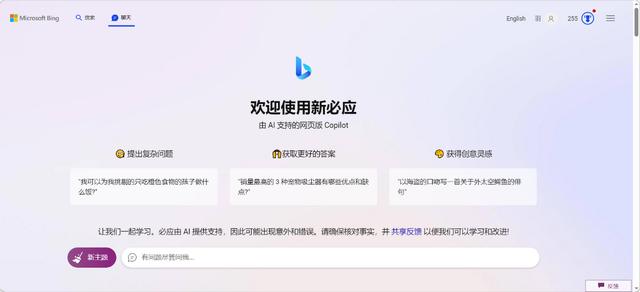 - 微软Bing:目前来说最方便使用的ChatGPT,这是微软推出的一个基于ChatGPT框架的搜索引擎聊天机器人,它可以根据用户的输入在网上搜索信息并提供回答,同时也能进行一般的对话。它的优势是它可以实时更新自己的知识,而不受数据过时的限制。它目前是免费的,你只需要科学上网,然后使用微软的Microsoft Edge浏览器即可: