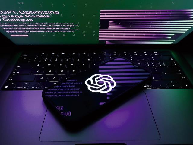 美国人工智能公司OpenAI的标识和智能聊天机器人ChatGPT网站页面(视觉中国/图)