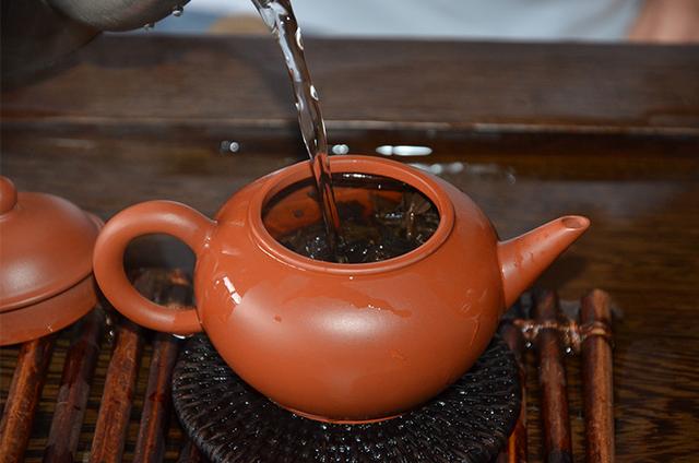 老茶建议用紫砂壶冲泡,注入沸水,开汤茶香洋溢,陈香馥郁。
