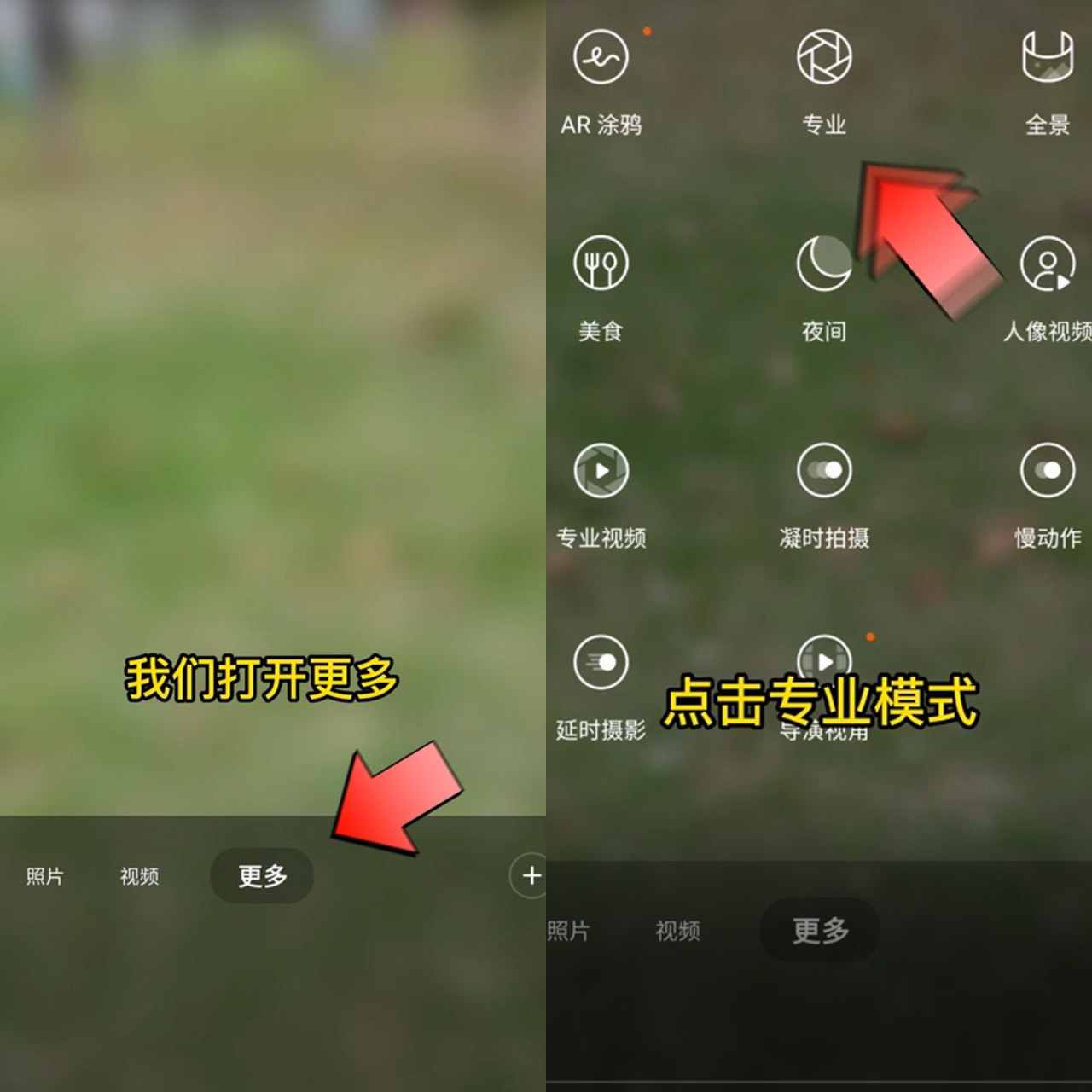 打开三星手机的相机,选择更多,点击专业模式,可以根据拍摄场景调节相机参数,拍出更加专业的照片。