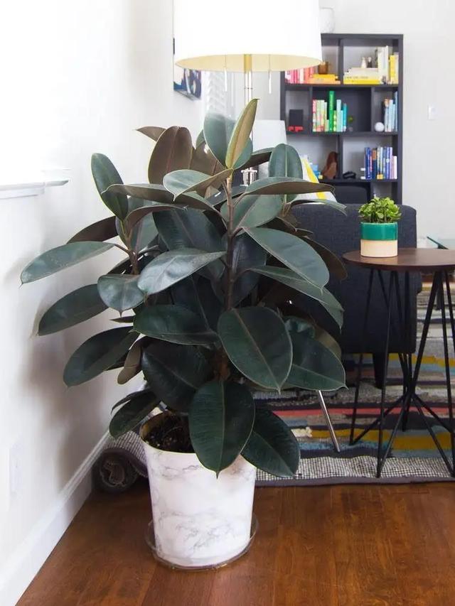 橡皮树看起来稳重大气,很适合摆放在客厅镇宅。橡皮树净化空气的能力也很优秀,它可以吸附粉尘,吸收空气中的有害物质,室内养一棵,健康又美观。而且,橡皮树养护起来其实是比较简单的,它的习性和它的外表一样,并不娇气。