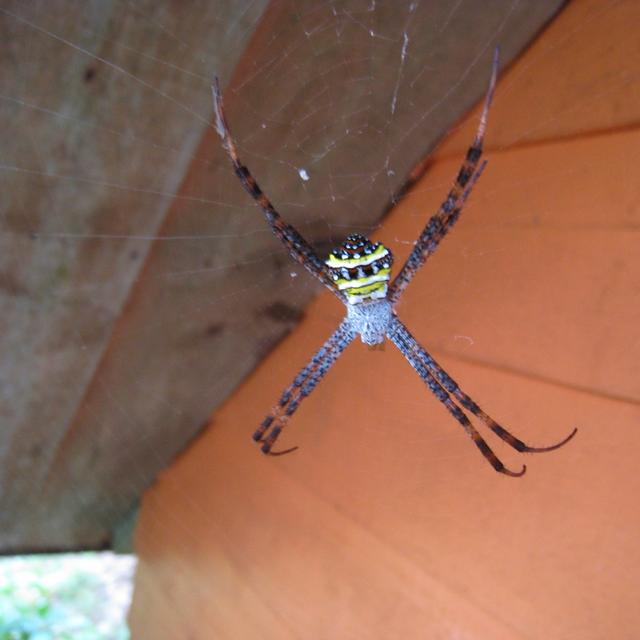此蜘蛛其轮廓及身体斑纹酷似中型金蛛雌性个体。此类蜘蛛为日行性,主要分布在灌丛或树林,鲜艳的体色可吸引昆虫前来而增加其捕食效率,它们有时也会在网上以白色的丝织出X型的图案称为隐带作为吸引昆虫之用。
