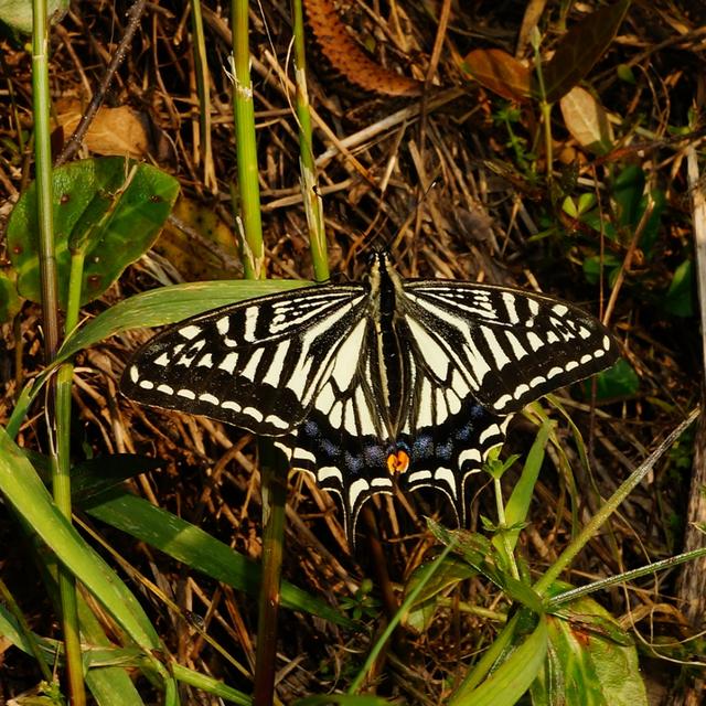 由形态特征判断应为玉带凤蝶的雄蝶。玉带凤蝶幼虫以芸香科植物为食,成虫好访花、吸水,也常发现在都会区的芸香科植栽上,是社区与校园常见的蝴蝶之一。