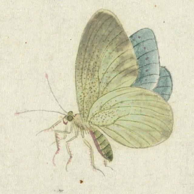 由触角判断此图所绘应为鳞翅目蝴蝶,但种类无法明确判别。