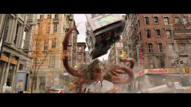 影片开始,本源宇宙的博士每晚都会做同一个噩梦,其实这不是梦,而是事实。是来自多元宇宙的捍卫者博士和一个拥有可以穿越多元宇宙能力的女孩被一只怪兽追杀,博士为保护女孩而战死,而怪兽其实是被旺达梦游控制来阻止博士他们拿神书对付自己,结果博士与怪兽同归于尽,这个女孩是本片的关键人物,她拥有可以穿越多元宇宙的能力,白色五角星就是她一拳轰开的穿越之门。其实女孩还没有完全掌握自己的能力,不然也不会这么狼狈,只有在受到伤害时,才能无意地随机打开某一个多元宇宙,女孩带着博士的尸体穿越来到本源宇宙,本源宇宙中的博士正在参加前女友的婚礼,可是新郎却不是他,就在婚礼进行的关键时刻,外面传出了人们恐慌的声音,似乎世界末日般,一只独眼章鱼怪横冲直撞在街道里,捕杀穿越过来的女孩。