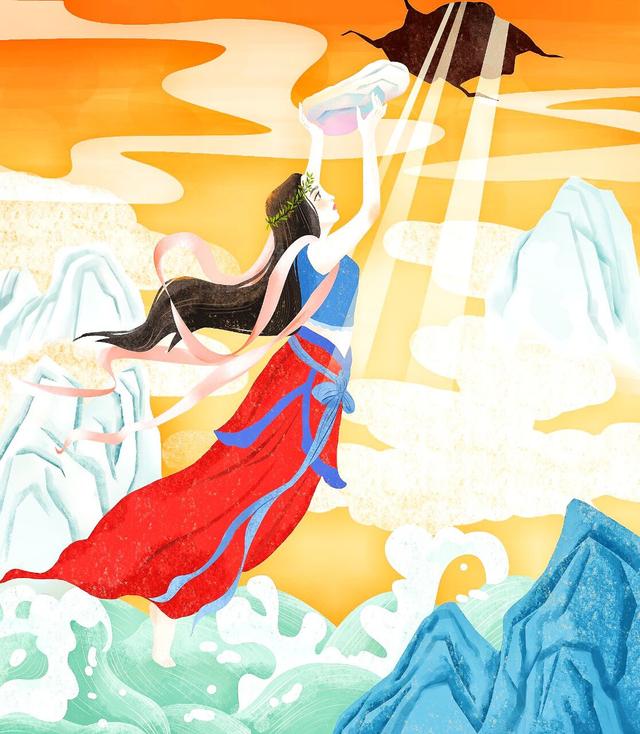 刚想休息,突然想到地上有个大洞。于是女娲摘了很多芦苇。把它们捆在一起。用大火烧了三天三夜,芦苇都烧成了灰。他把灰填在地上的大洞里,再也没有洪水了。女娲对人说。看,天补好了,地洞填满了。以后再也不用担心洪水和火灾了。当人们听到顿时高兴地欢呼起来。可是。一位老人皱起眉头说道。天是补的,可撑天的柱子没了啊。再塌怎么办?也不能破一次补一次啊。女娲一想,也是对的,还得弄个撑天的柱子。去哪儿找?他来到南方的森林,找到了一棵参天大树。这棵树太高了,长到天上。