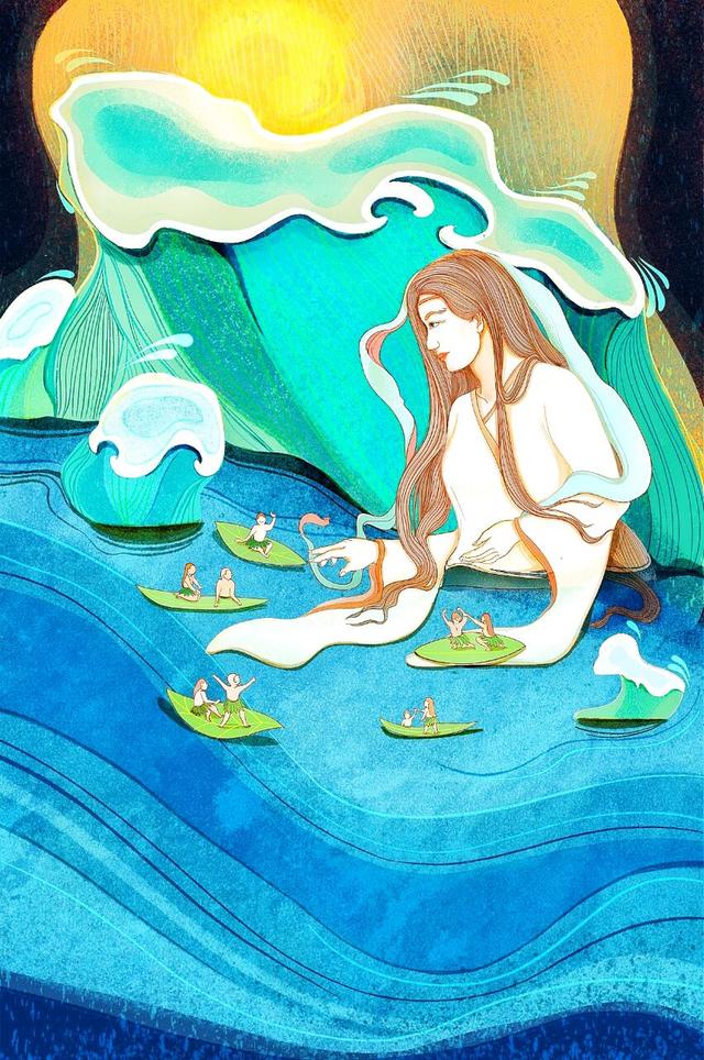 女娲造完人后,看到人们过着幸福安宁的生活,就放心地回到天上,想好好睡一觉,此时此刻,不周山下两个ShenXian打了起来,其中一个叫共工,他们连续打了九天九夜,Zui后那个叫共工的ShenXian打败了。他非常生气,他飞了起来,撞上了不周山。只听到轰隆声,不周山被撞倒了。这是不周山撑天的柱子。支撑着天东边一个角。东边的天空突然塌了下来,还砸了一个大洞,熊熊的天火从天上的洞里喷了出来。洪水从地上的大洞里冒出来,很快就到了人们居住的地方。