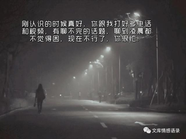 4.刚认识的时候真好,你跟我打好多电话和视频,有聊不完的话题,聊到凌晨都不觉得困,现在不行了,你很忙!
