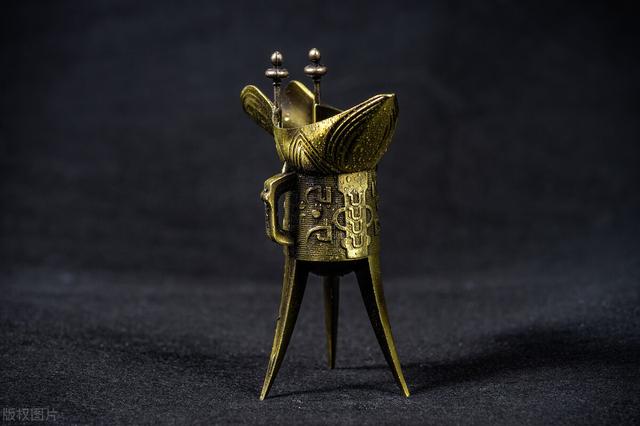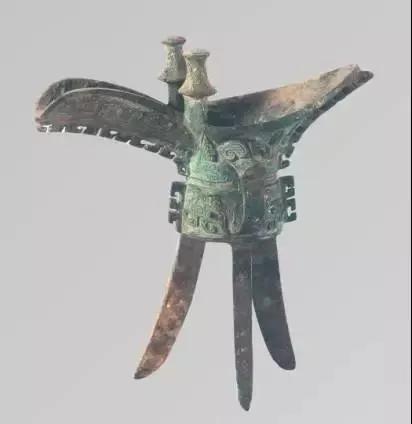 斝是中国古代先民温酒的酒器,通常由青铜制作而成,三足、一耳、两柱,圆口呈现喇叭形。