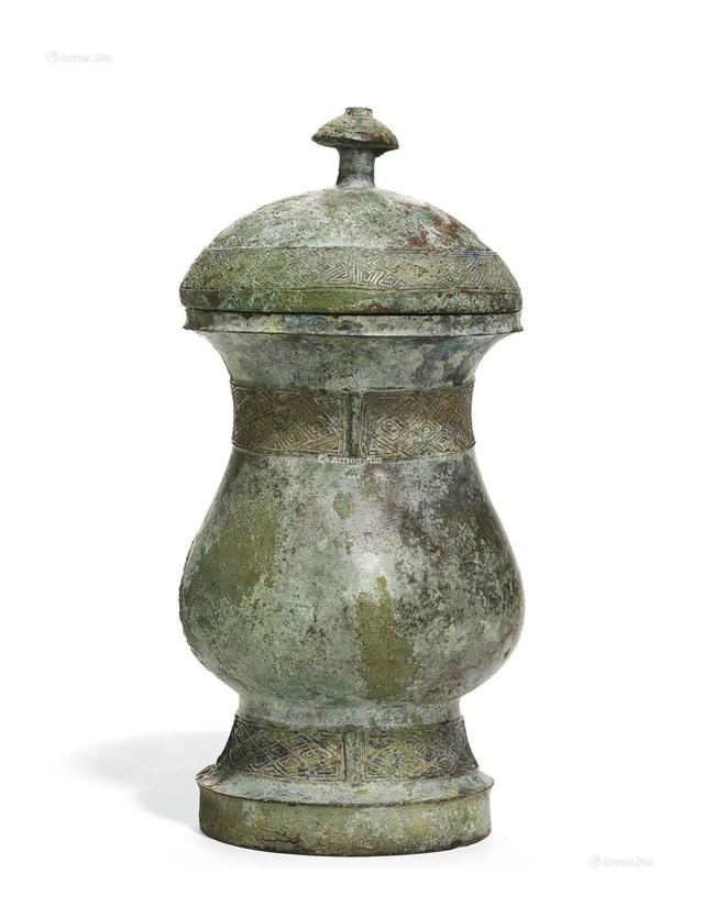 古代盛酒的器物,也可以用来盛水。多为小口、广肩、深腹、圈足、有盖。